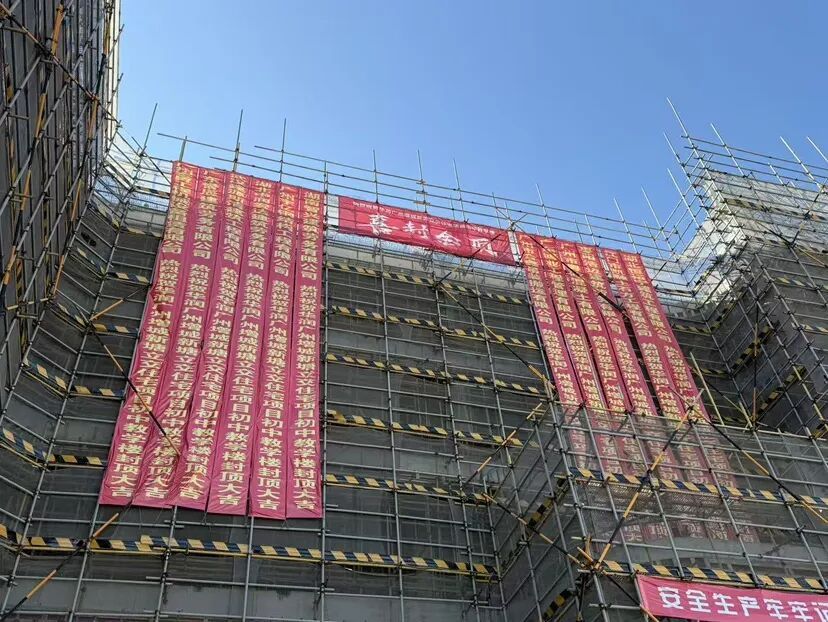 今日的封顶典礼现场一片繁荣昌盛的表象