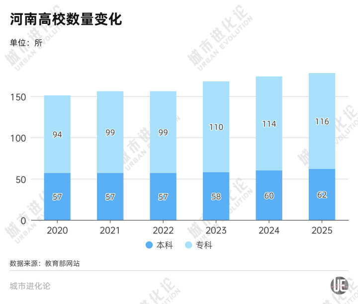 2020—2025年,河南新增专科22所,占新增高校的80%以上。